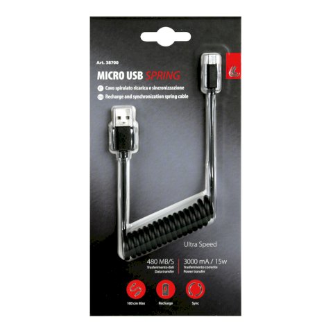 Opružni kabel USB > Micro USB - 100 cm - Crni