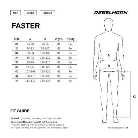 Rebelhorn Faster – Motociklističke hlače s prepoznatljivim, agresivnim izgledom inspiriranim vojničkim stilom. Rebelhorn Faster je model dizajniran za motocikliste koji očekuju udobnost, slobodu kretanja i funkcionalnost u svakoj situaciji. Fleksibilan materijal, kroj u borbenom stilu i certificirani zaštitnici čine ove hlače spremnima za svaku misiju – od svakodnevnih putovanja na posao do vikend izleta.